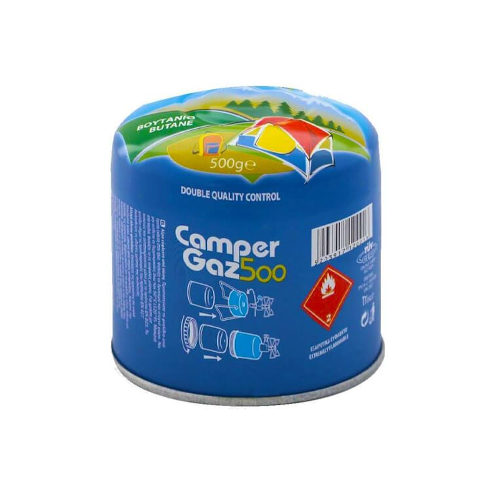 Φιαλίδιο βουτανίου 500 γραμμαρίων της εταιρίας Camper gaz. Κατάλληλο για καμινέτα & λάμπες “ΓIΓAΣ”.