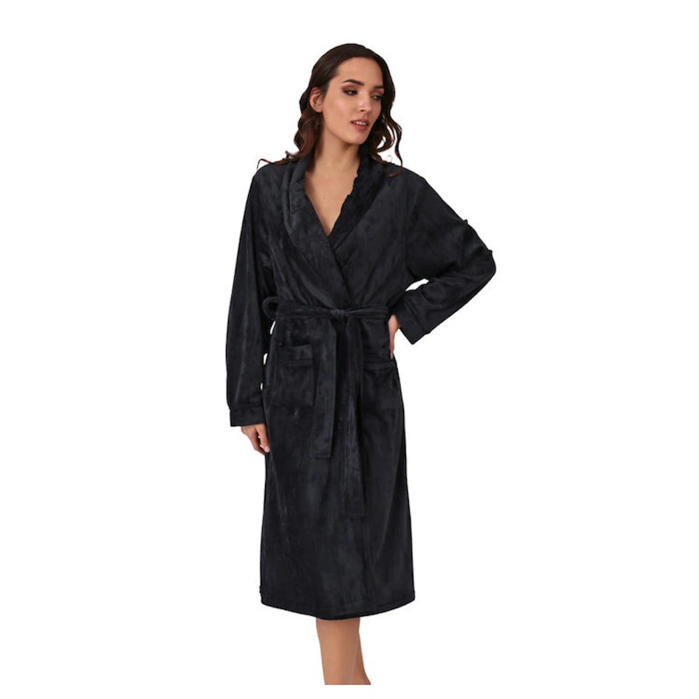 Γυναικεία ρόμπα. Ιδανική για να σας κρατάει ζεστές τους χειμερινούς μήνες. Από ύφασμα με επένδυση fleece που προσφέρει απαλή αίσθηση.