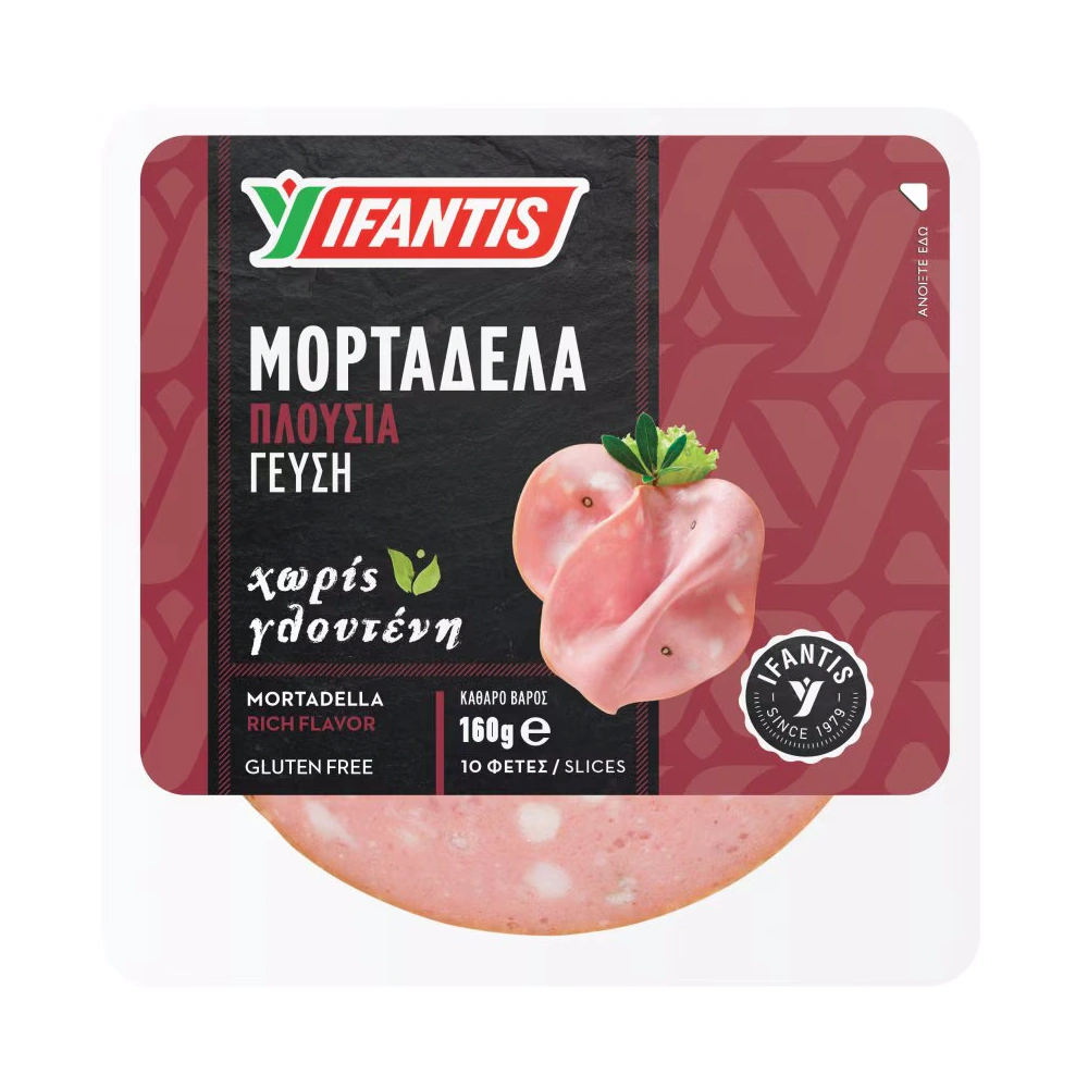 Original price was: 4.10 €.3.90 €Η τρέχουσα τιμή είναι: 3.90 €.Μορταδέλα Φέτες Χωρίς Γλουτένη 160g