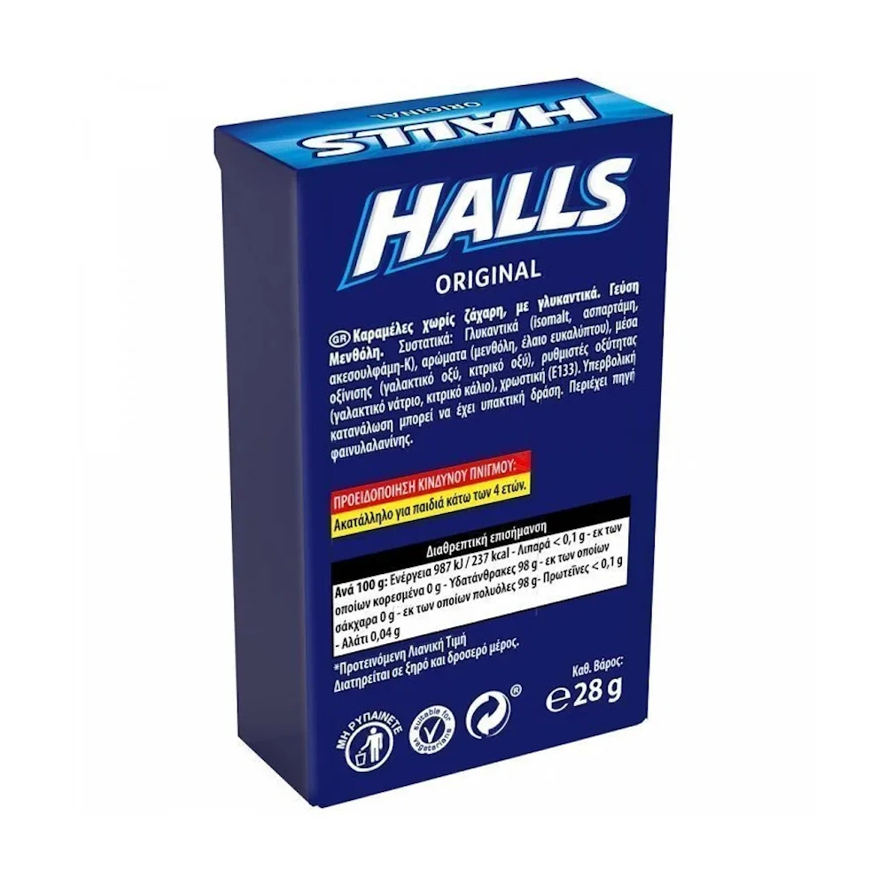 Halls Original Καραμέλες Χωρίς Ζάχαρη Κουτί 28gr