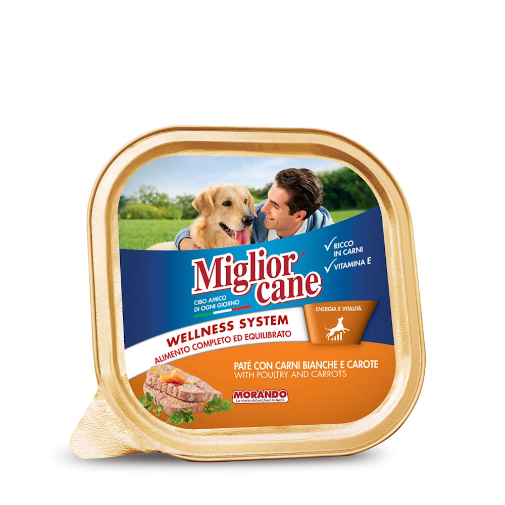 Original price was: 0.87 €.0.80 €Η τρέχουσα τιμή είναι: 0.80 €.Migliorcane Πατέ Σκύλου με Λευκά Κρέατα & Καρότα 150γρ