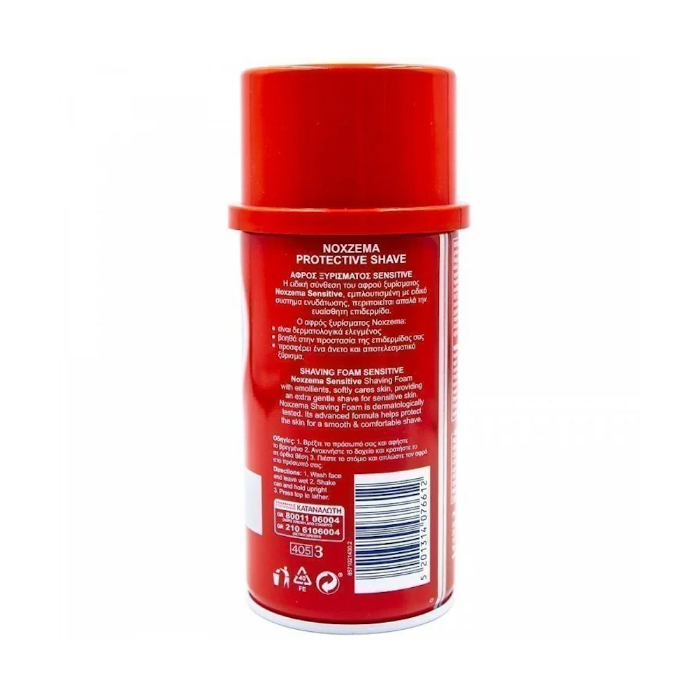 Αφρός ξυρίσματος Noxzema Sensitive με μαλακτικά πρόσθετη προστασία, περιποιείται απαλά και προστατεύει το δέρμα, ενώ παρέχει απαλό και άνετο ξύρισμα. Είναι δερματολογικά ελεγμένο και προσφέρει εγγυημένο αποτέλεσμα στο καθημερινό ανδρικό ξύρισμα.